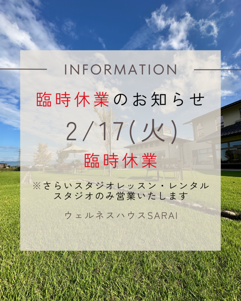 2/17(火)臨時休館のお知らせ